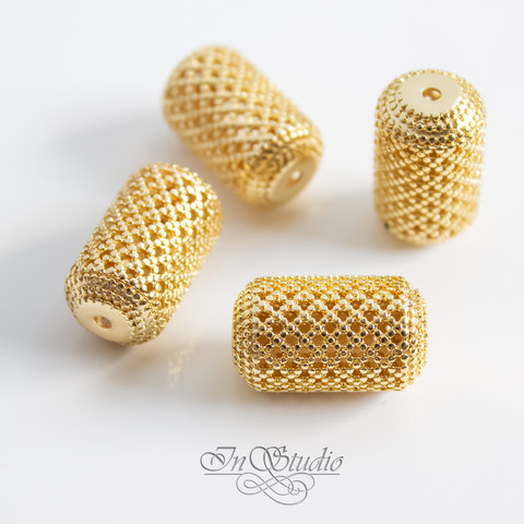 Бусина крупный фактурный цилиндр 20х12 мм позолота