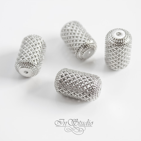 Бусина крупный фактурный цилиндр 20х12 мм родий