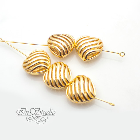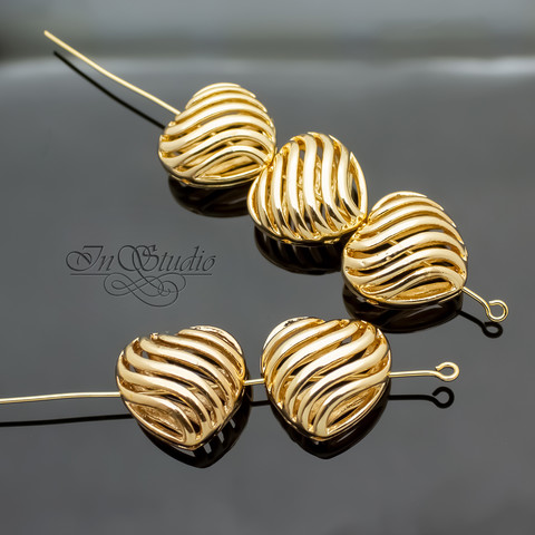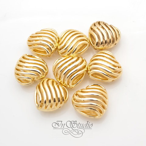 Бусина декоративная сердце 16 мм на 4 отверстия позолота