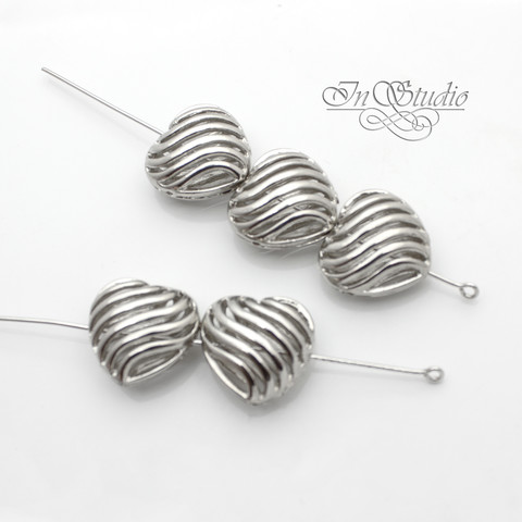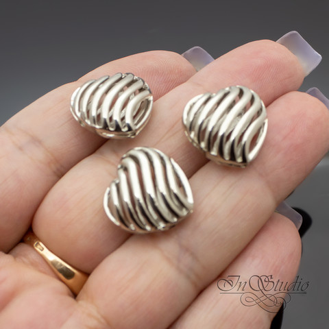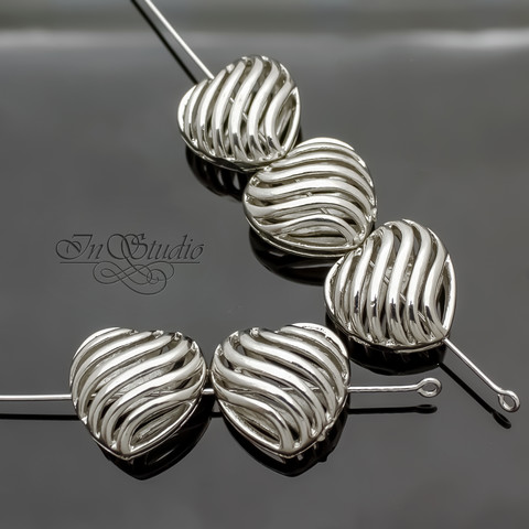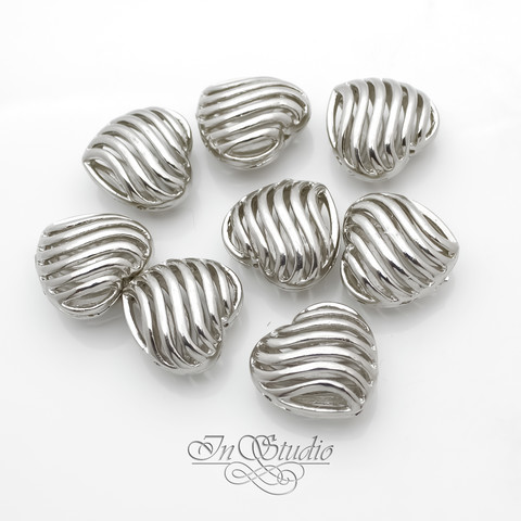 Бусина декоративная сердце 16 мм на 4 отверстия родий