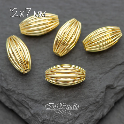 Бусины рис из металла 12х7 мм фактурные разделители позолота
