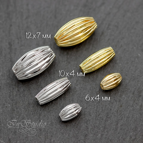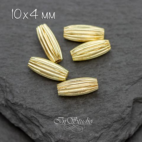 Бусины рис металлические 10х4 мм фактурные разделители позолота