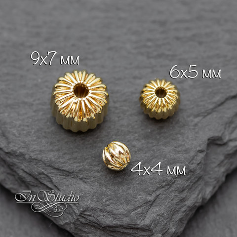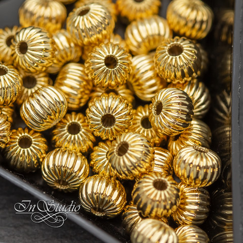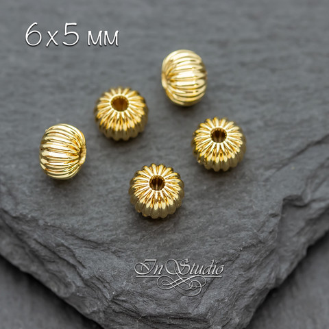 Бусины из металла бочонки 6х5 мм фактурные разделители позолота