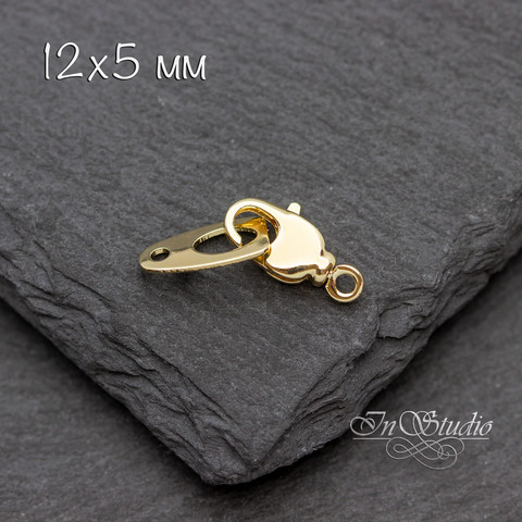 Замок карабин лобстер для рукоделия 12х5 мм позолоченное покрытие