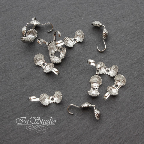Каллоты концевики с крючком ракушка 5х6 мм родий