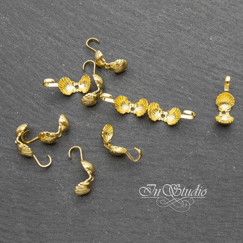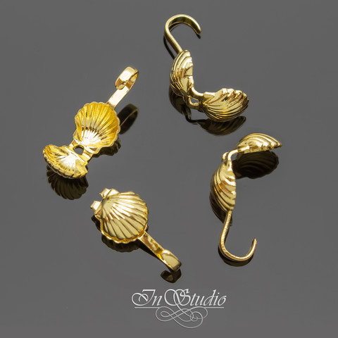 Каллоты концевики с крючком ракушка 5х6 мм позолота