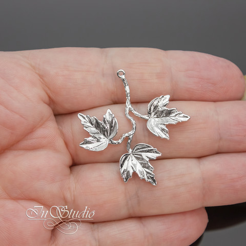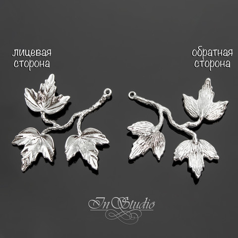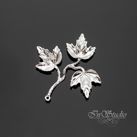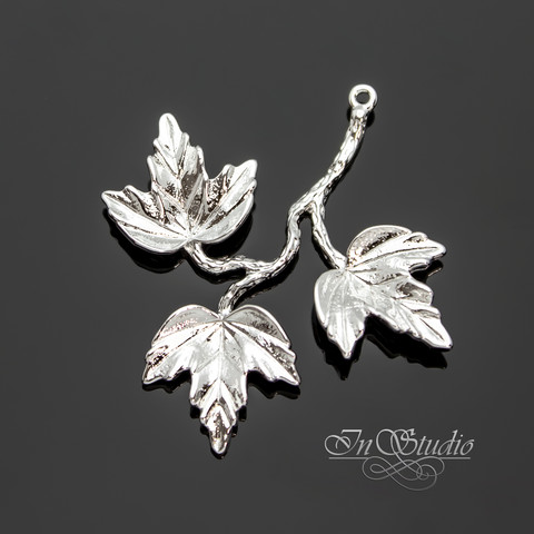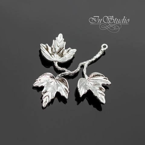 Подвеска Веточка с тремя листочками 34х37 мм родий