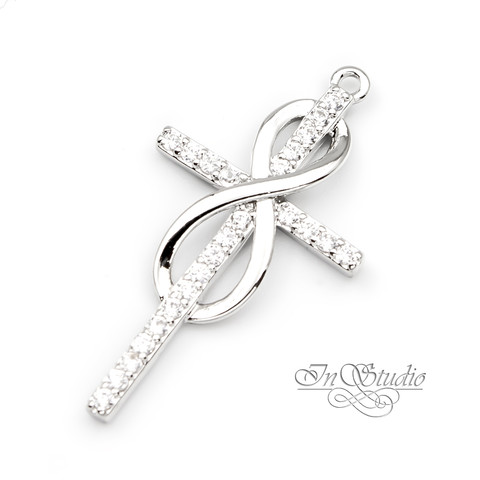 Подвеска Крест Бесконечность 27х15 мм фианиты родий