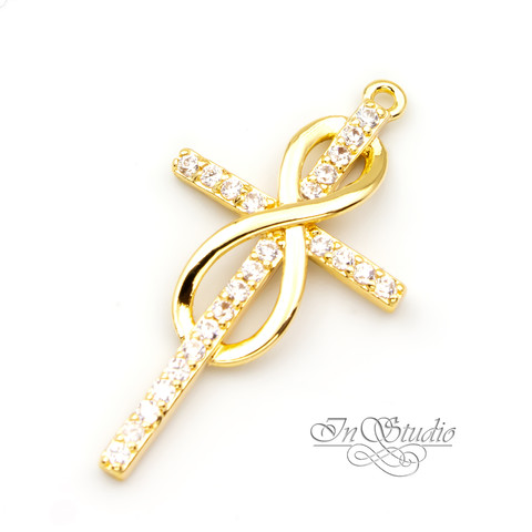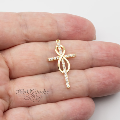 Подвеска Крест Бесконечность 27х15 мм фианиты позолота