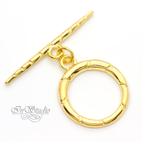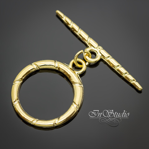 Замок тогл круглый 20 мм резной с тиснением позолота