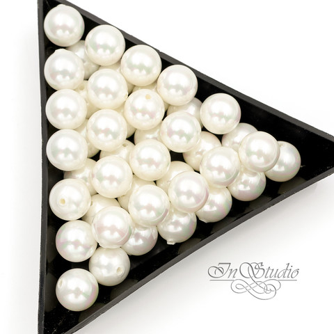 Жемчуг Shell pearl для вклеивания 8 мм белый полупросверленный шарик