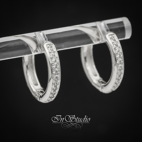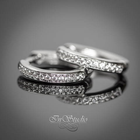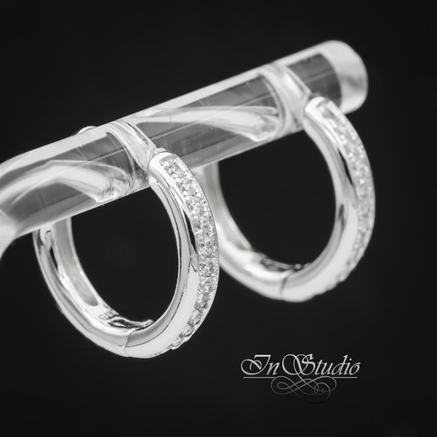 Швензы конго 16х3 мм с фианитами - бублики, кольца для серег ЭММИ покрытие родий, инкрустация фианитами.