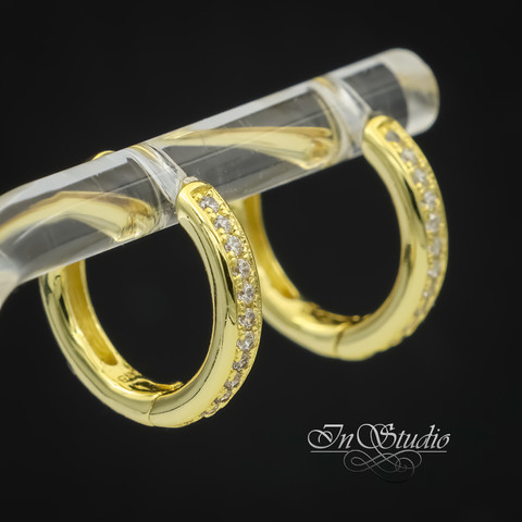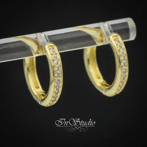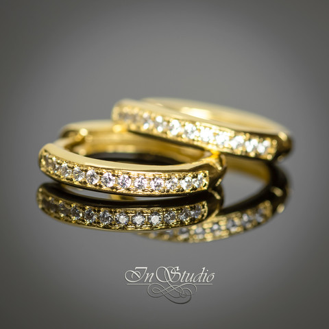 Швензы конго 16х3 мм с фианитами, бублики, кольца для серег ЭММИ - позолота, инкрустация фианитами.