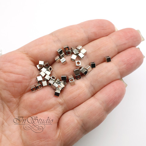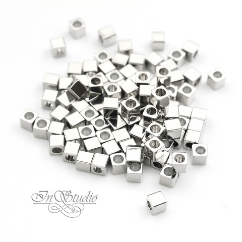 Бусины металлические кубики 3 мм разделители спейсеры родий