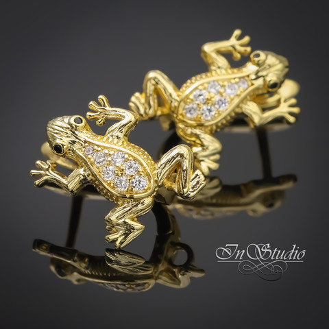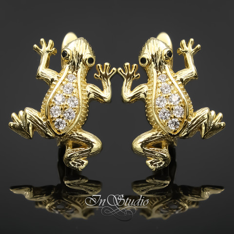 Швензы для серег Лягушки фианиты позолота