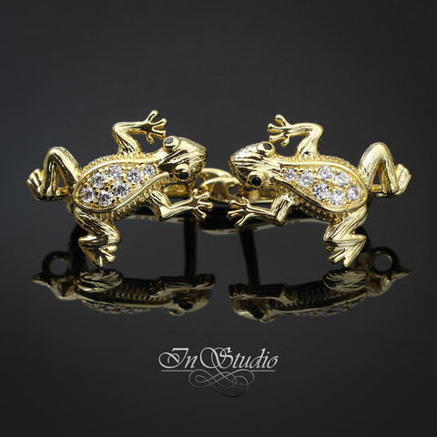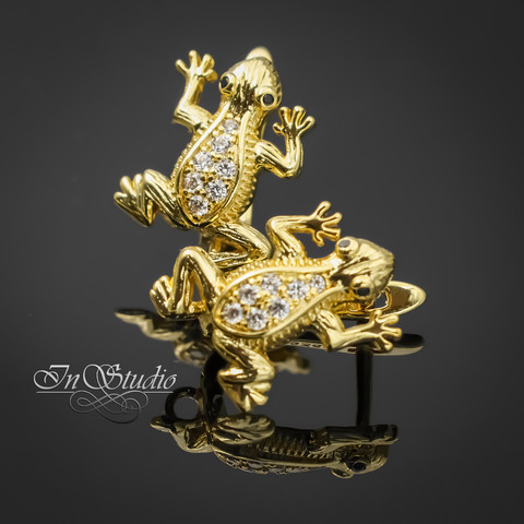 Швензы позолоченные для изготовления серег Лягушата инкрустированные фианитами.