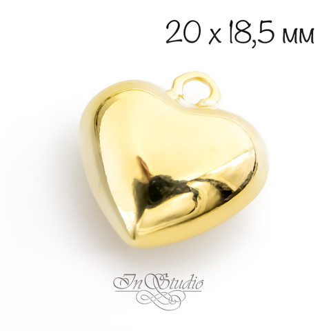 Подвеска кулон объемное Сердце 20 мм позолоченное покрытие