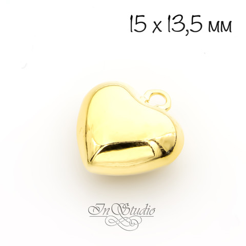 Подвеска кулон объемное Сердце 15 мм позолоченная