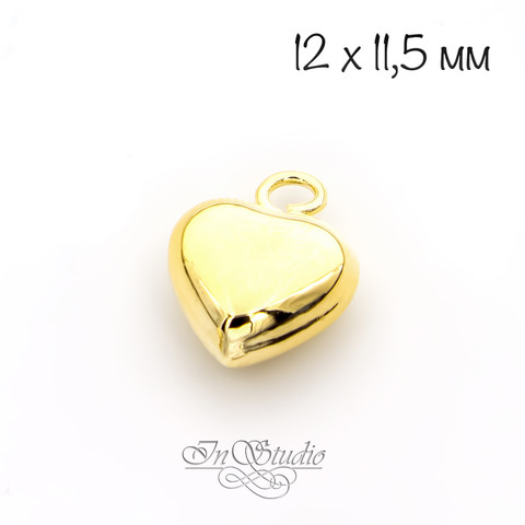 Подвеска кулон объемное Сердечко 12 мм покрытие позолотой