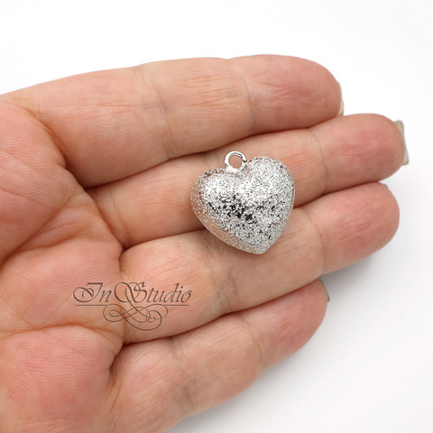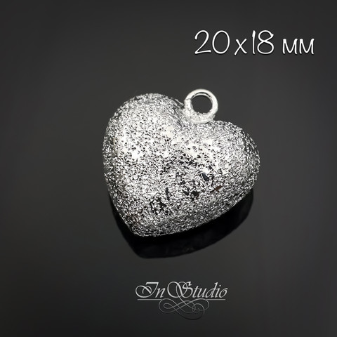Подвеска кулон фактурное Сердце 20 мм родий