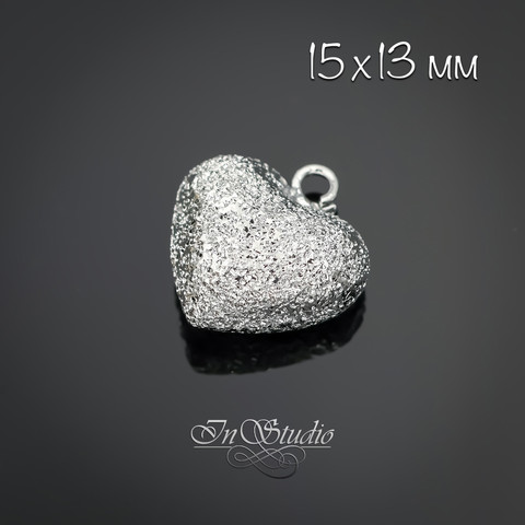 Подвеска кулон фактурное Сердечко 15 мм родирование