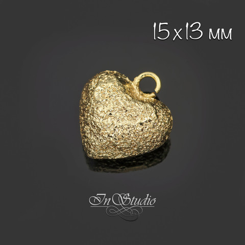 Подвеска кулон фактурное Сердечко 15 мм с позолотой