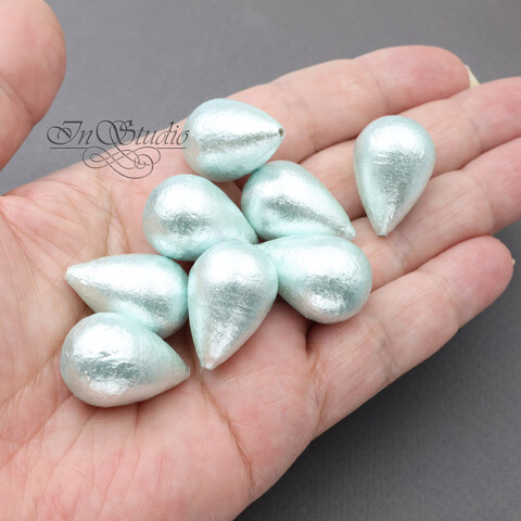 Хлопковый полупросверленный жемчуг МЕНТОЛ 24х16 мм бусины капли