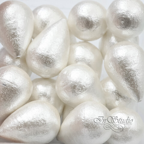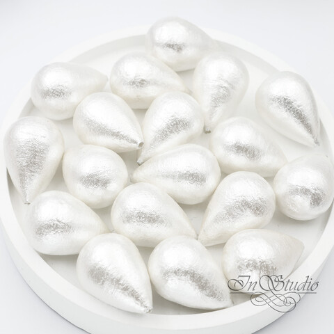 Хлопковый полупросверленный жемчуг БЕЛЫЙ 24х16 мм бусины капли