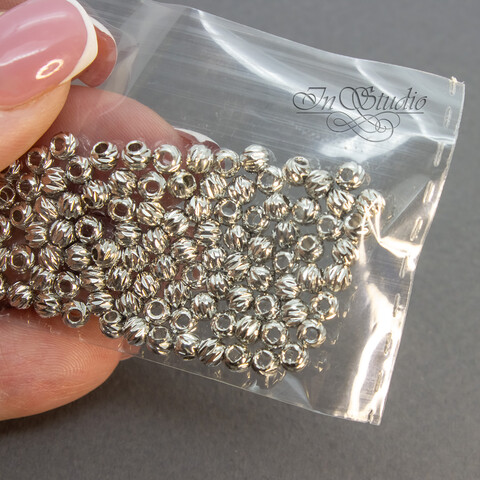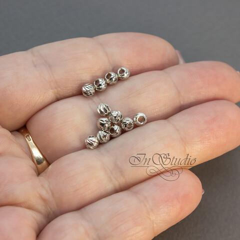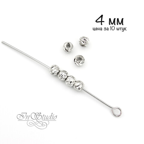 Бусины разделители спейсеры 4 мм шарики с насечками родий