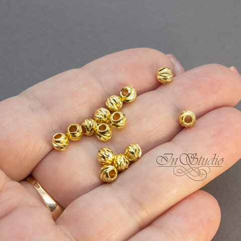 Бусины разделители спейсеры 5 мм фактурные шарики с насечками позолота