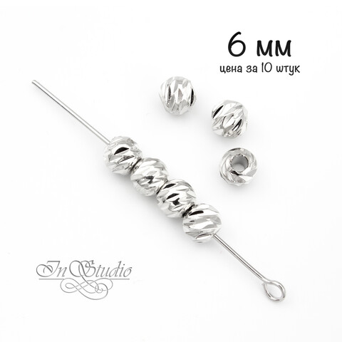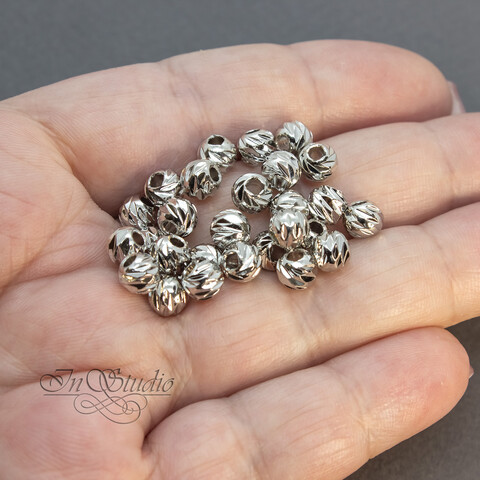 Бусины разделители 6 мм спейсеры шарики с насечками родированные