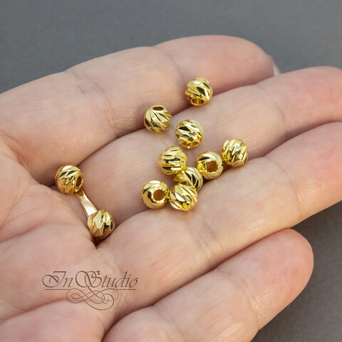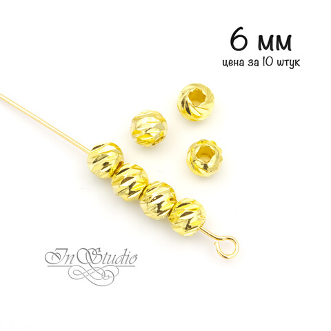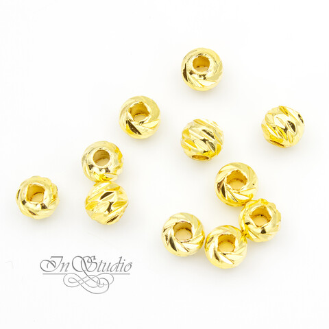 Бусины разделители 6 мм спейсеры шарики с насечками позолоченные