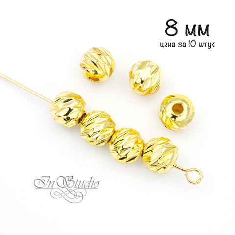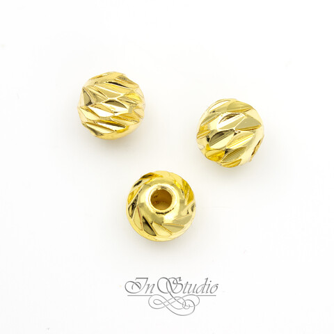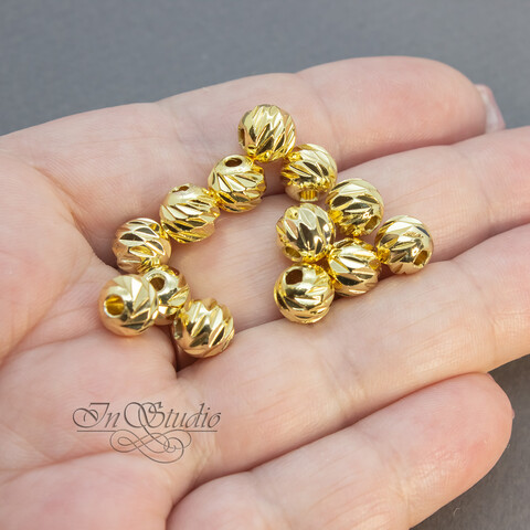 Бусины разделители 8 мм спейсеры фактурные шарики с насечками позолоченные