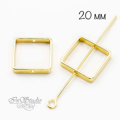 Рамка для бусин квадратная 20 мм позолоченное покрытие