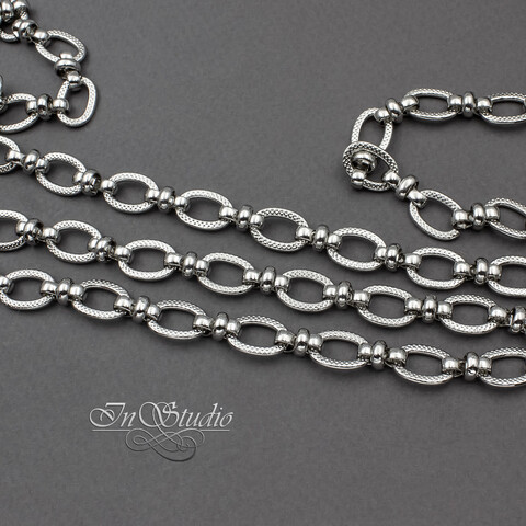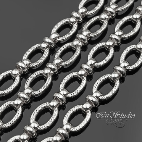 Более крупные продолговатые звенья соединяются в цепь более мелкими колечками.