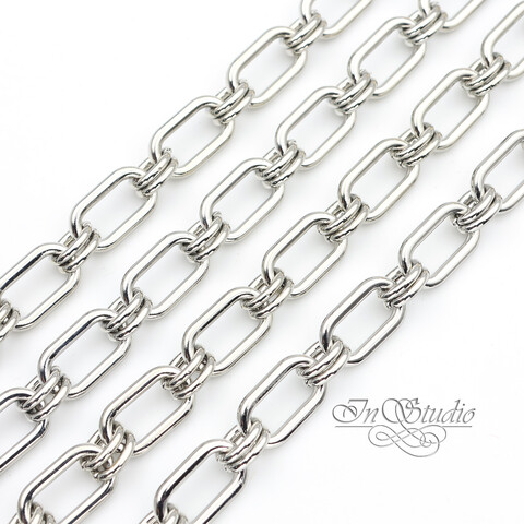 Цепь декоративная с продолговатыми звеньями AMERA 8,5 мм родий