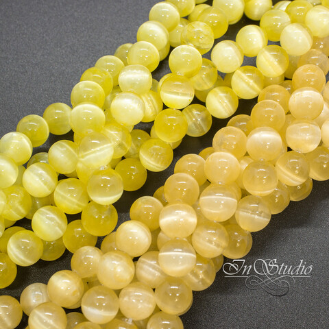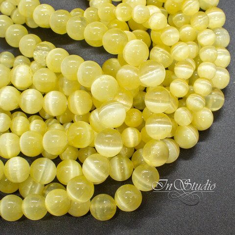 Селенит натуральный лимонный 6 8 мм с эффектом кошачий глаз бусины шарики