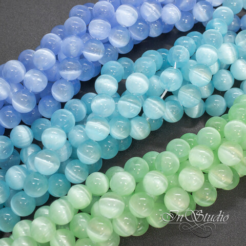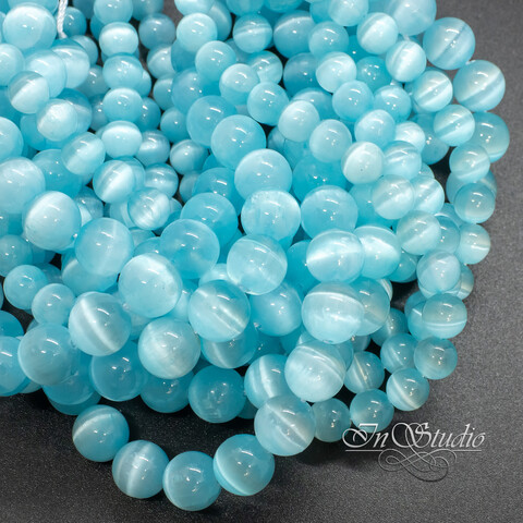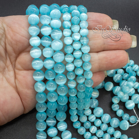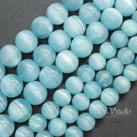 Селенит натуральный бирюзовый с эффектом кошачий глаз 6 8 10 мм бусины шары