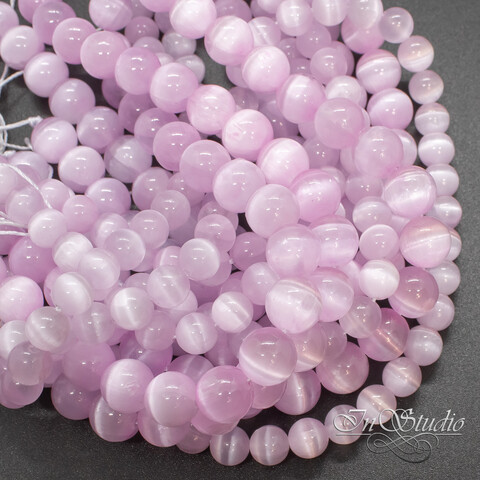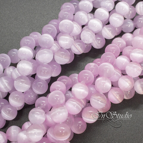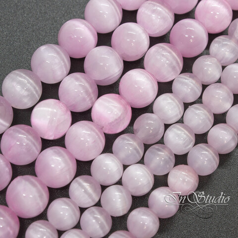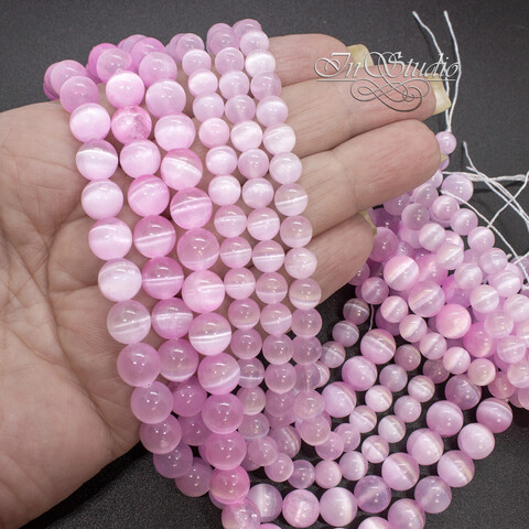 Селенит природный розовый с эффектом кошачий глаз 6 8 10 мм бусины шары