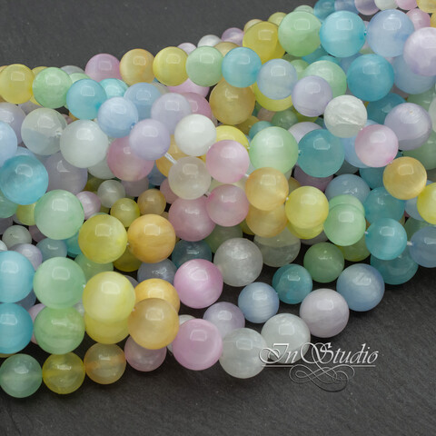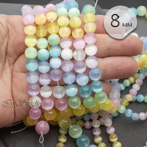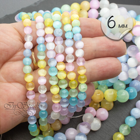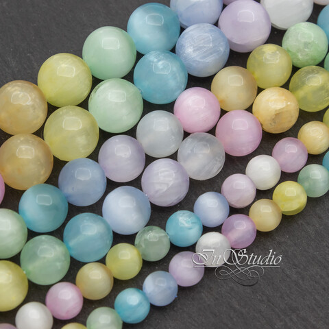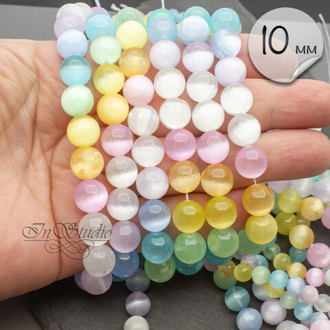 Селенит природный разноцветный с эффектом кошачий глаз НИТЬ 6 8 10 мм бусины шарики