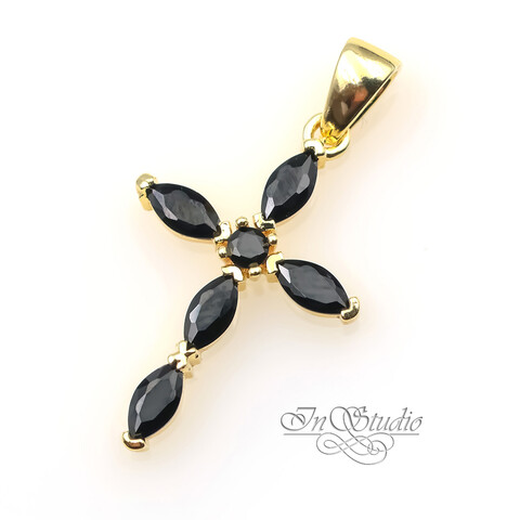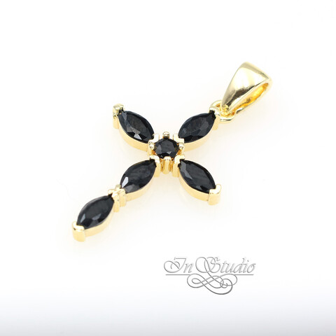 Подвеска Крест кулон позолота 26х14 мм с черными овальными фианитами