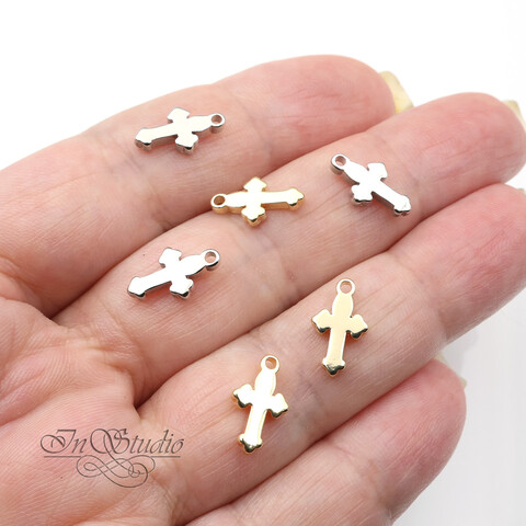 Подвеска кулон мини Крестик гладкий 12х7 мм позолота
