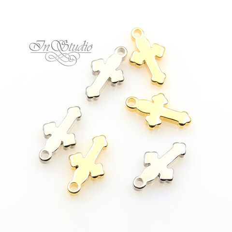 Подвеска кулон мини Крестик гладкий 12х7 мм родий