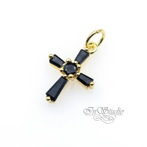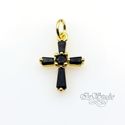 Подвеска Крест кулон 15х11 мм черные фианиты позолота