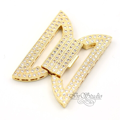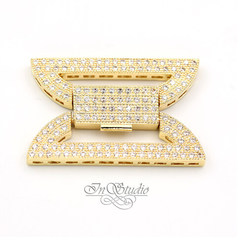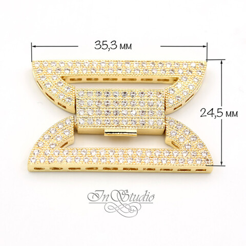 Весь замок полностью инкрустирован россыпью миниатюрных сверкающих фианитов.