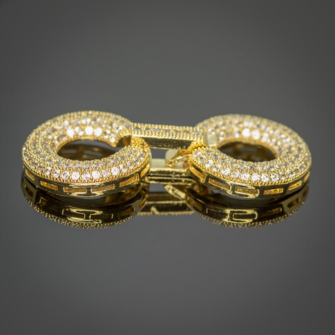 Вся застежка полностью инкрустированная миниатюрными сверкающими фианитами.