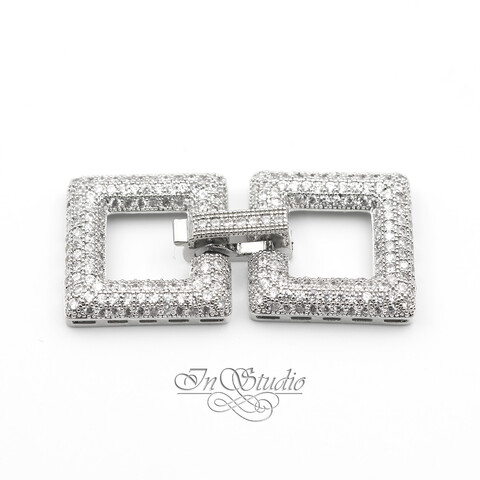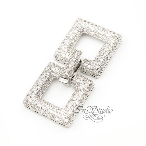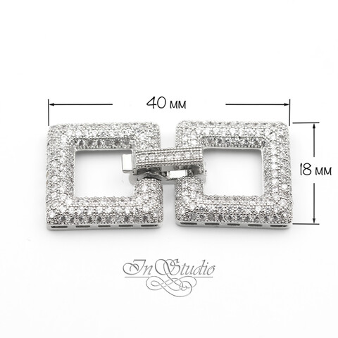 Замочек защелка Квадраты 40х18 мм с фианитами родий
