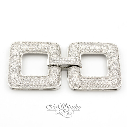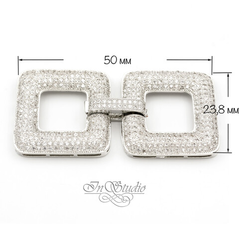 Замок защелка Квадраты 50х24 мм с фианитами родированный