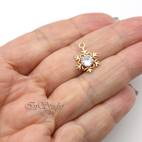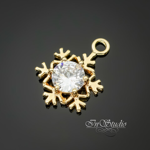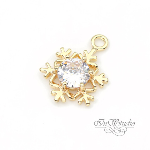 Подвеска Снежинка с крупным фианитом 16,6х12 мм позолота