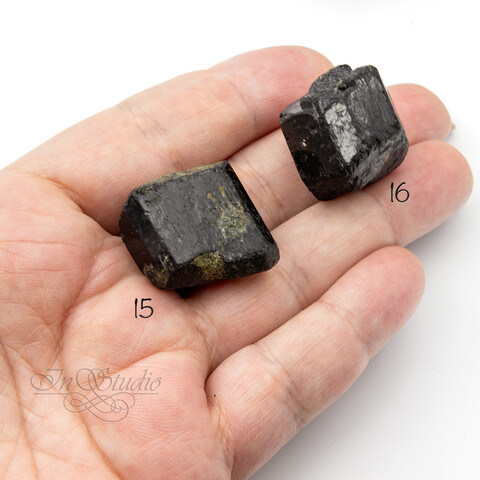 Натуральный очень крупный природный необработанный шерл - черный турмалин. Бусины длиной от 22 до 28 мм